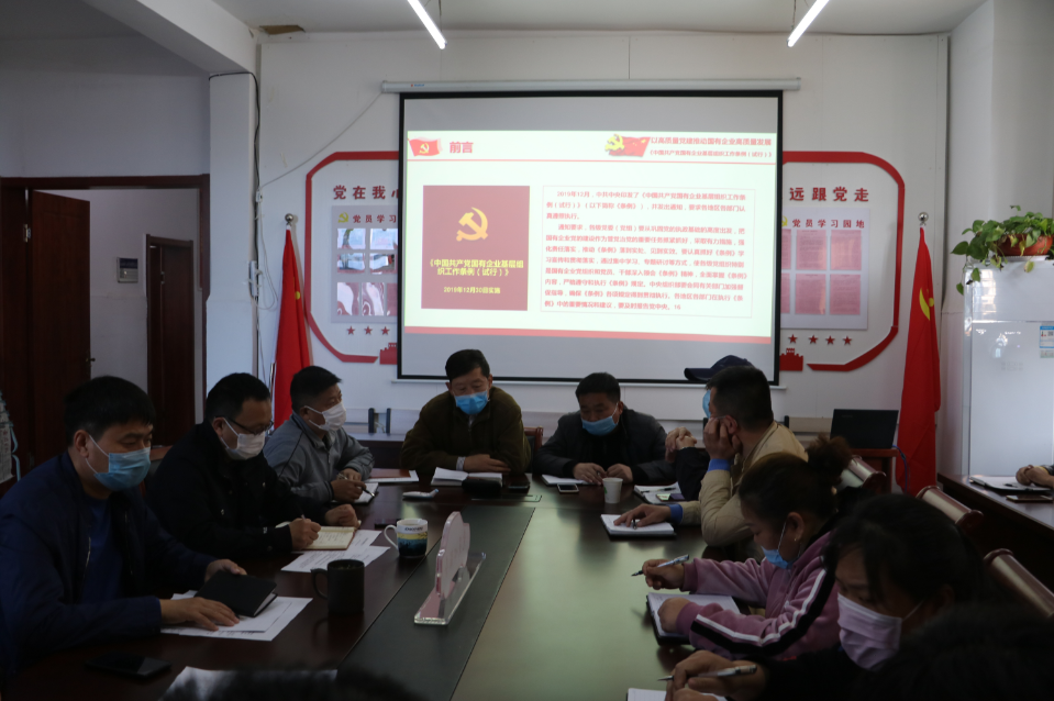 城泊公司黨支部組織黨員干部集中學習《中國共產(chǎn)黨國有企業(yè)基層組織工作條例(試行)》