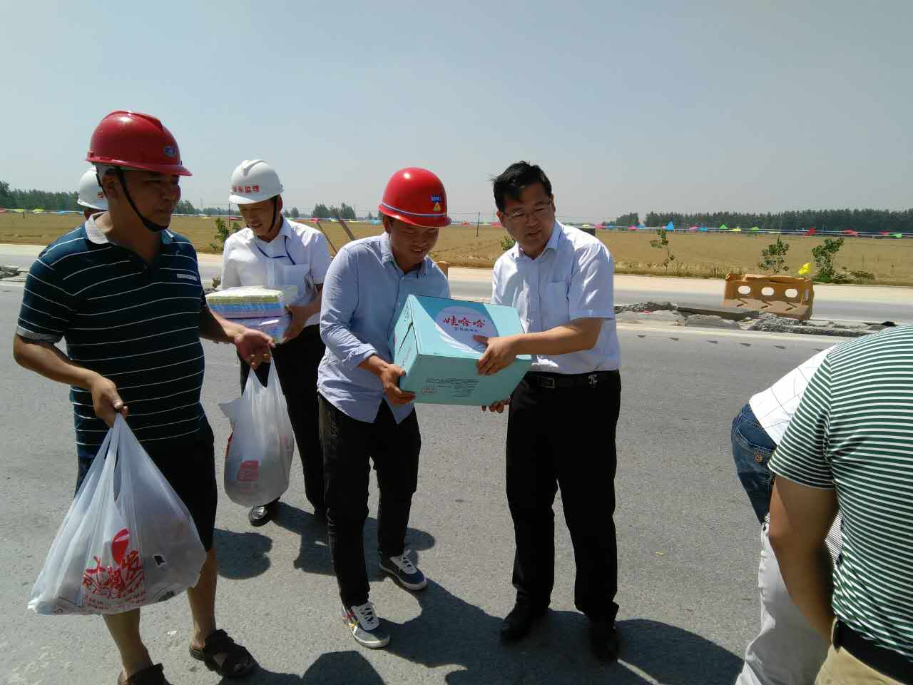 張總代表交投公司黨支部一線員工克服高溫炎熱和認(rèn)真履行崗位職責(zé)的行為表示感謝,并親自為大家送上準(zhǔn)備好的防暑降溫物品,同時(shí)叮囑他們?cè)谘谉岬墓ぷ鳝h(huán)境下注意防暑降溫和安全生產(chǎn),要求通鳴公司相關(guān)負(fù)責(zé)人做好夏季防暑降溫工作,杜絕中暑情況的發(fā)生。