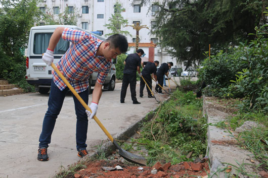 7月27日周五是保安公司黨員固定活動日。當(dāng)天下午15時,在公司黨支部生活委員的帶領(lǐng)下十幾名黨員對公司附近綠化帶的雜草進(jìn)行了集中清理。